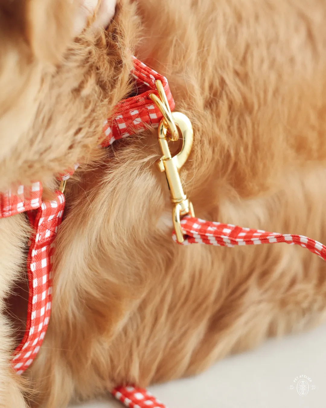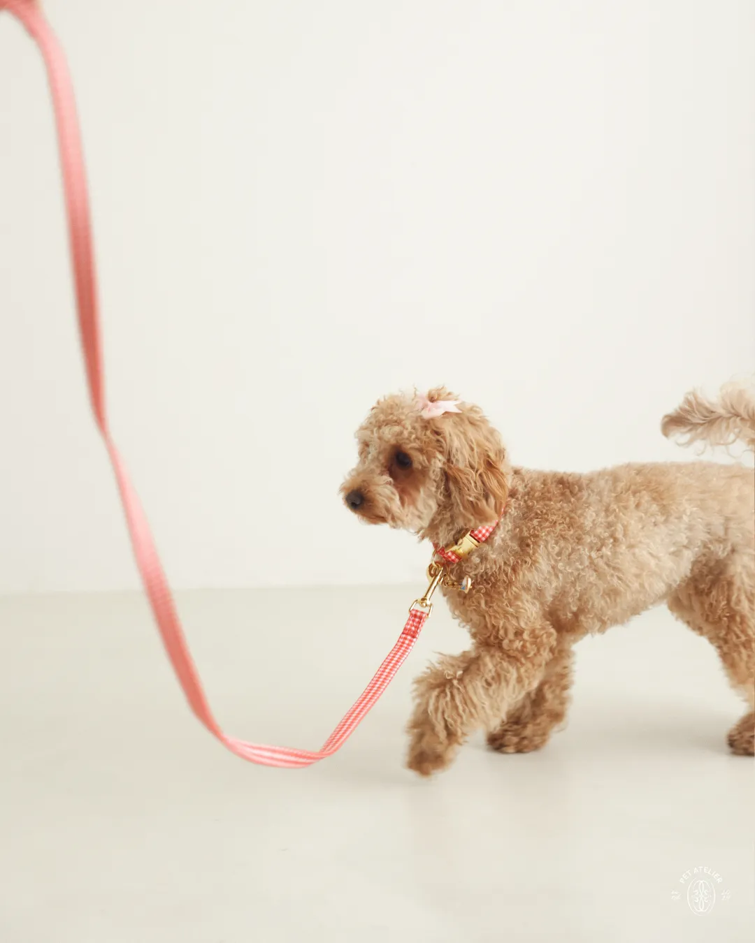 Correa ajustable con estampado Vichy en tonos suaves y luminosos, diseñada para paseos cómodos y con estilo.